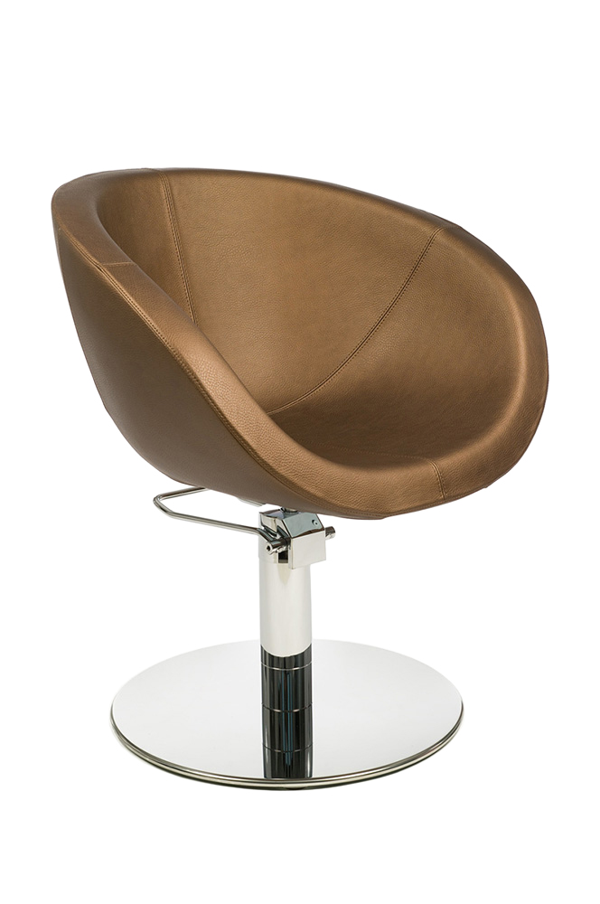 Friseurstuhl. Gestell aus Holz mit Polstermaterial aus PU-Schaumstoff und Bezug aus Kunstleder. In unterschiedlichen Kunstledervarianten/Kunstlederfarben und Fußvarianten erhältlich. Optional mit Pumpe und Blockierfunktion. Hier abgebildet mit der Fußvariante 10. Made in Italy